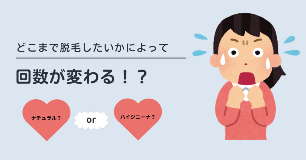 | ハイジニーナ(全てなくす) | 8〜10回以上 | ツルツルな仕上がりを目指す人向け |