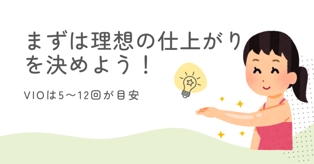 このように、VIO脱毛の回数はもともとの毛量や毛質、目指すゴールによって異なりますが、平均的には5〜12回が目安です。